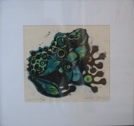 Jahresausgabe 2000, Nr. 225 von 330 Handabzügen ,Linoleum Hochdruck, 4 Platten und 4 Farben auf Papier, gerahmt